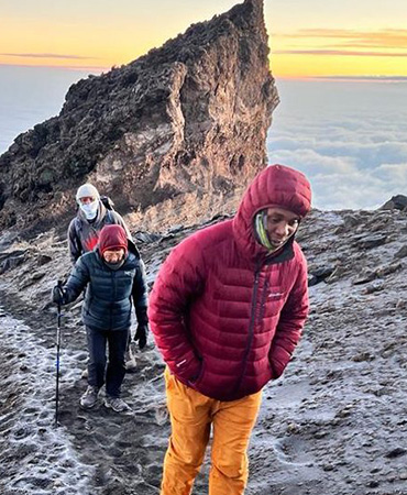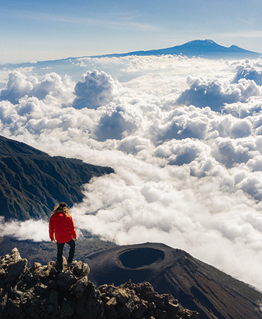 The final ascent to Socialist Peak begins before dawn, following a dramatic crater rim with steep sections and unforgettable panoramic views.